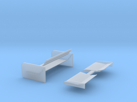 Rear wing main plane has positioning indents on the bottom for the wing supports, which you will need to trim down slightly on the kit.
