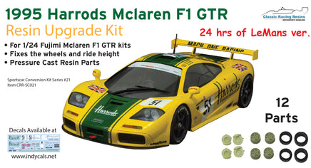 This kit upgrades the 1/24 Fujimi Mclaren F1 GTR Short Tail kits to solve the oversize wheels and ride height problem with the kits.