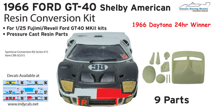 Designed to convert the 1/24 Fujimi/Revell Ford GT-40 kits into the 1966 Shelby American team cars from the Daytona 24 hrs.