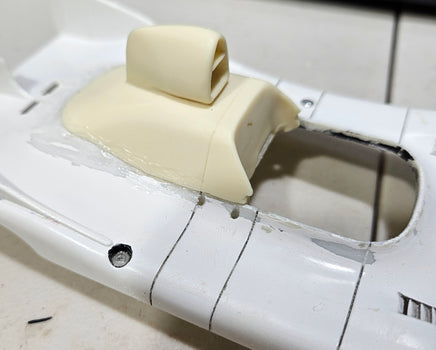 High airbox conversion kit for the 1/24 Mitsuwa Martini Porsche 936/BLACK Martini Porsche 936 kits. This conversion kit makes it possible to build the 1976 24 Hours Le-mans winner of Jacky Ickx and Gijs van Lennep.