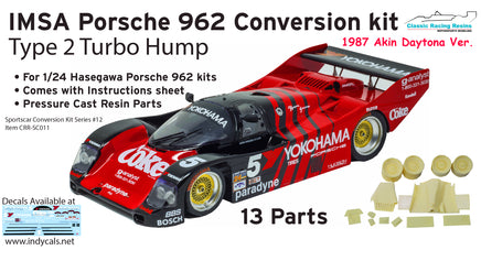 This resin conversion kit for any 1/24 Hasegawa or Revell Porsche 962c kits to convert into the 1987 IMSA COKE Yokohama Porsche 962 depicted as what raced in the 1987 Daytona 24